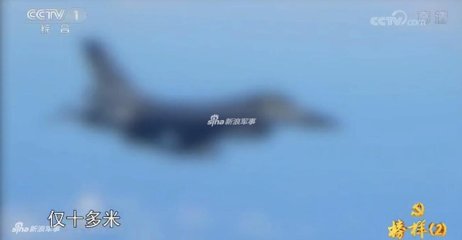 遭到國防部派出的2架F-16戰鬥機攔截畫面。畫面中雙方距離僅10公尺,緊張情勢一觸即發。