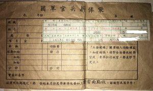 附上,保存33年的,中華民國陸軍退伍當月(民國81年06月)薪俸袋(破月;正常月俸80年好像是6,700元?還是81年調薪是7,440元?有加領領導加給的義務役士官,好像是8,900元)