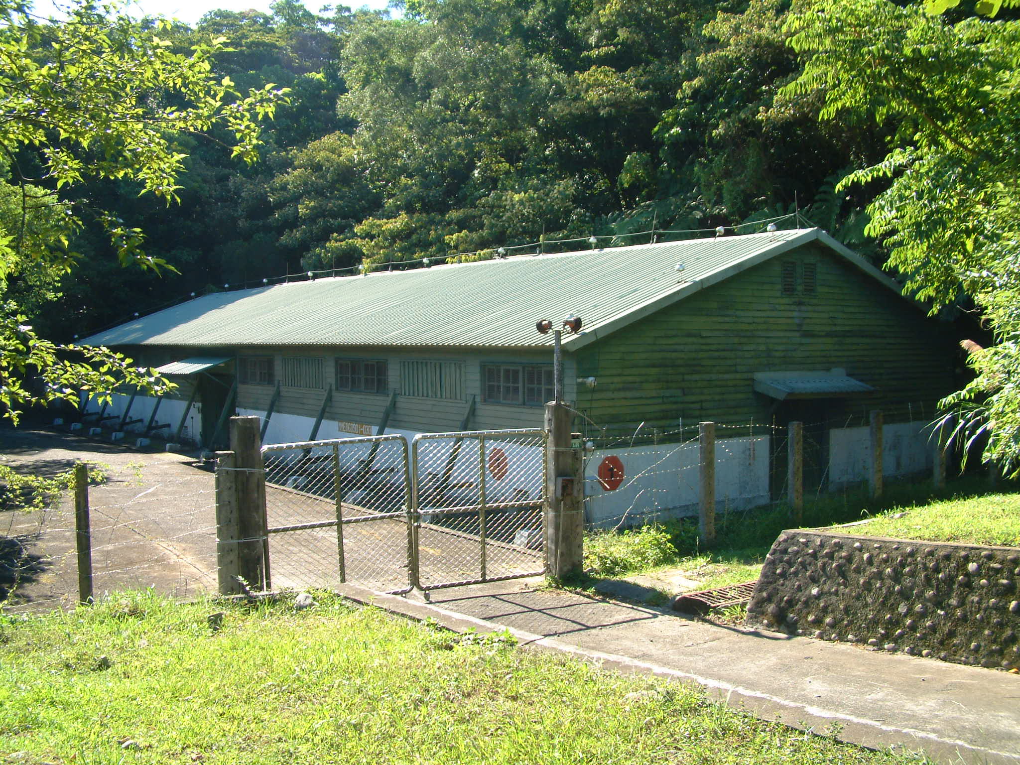 這彈藥庫的哨所 設計得很特殊 彈藥庫後方是營區圍牆 約2米多高 牆外是條寬約2米的臭水溝